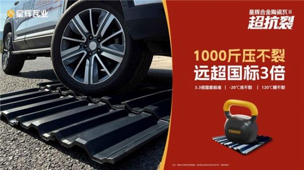 此次,星辉瓦业再次以硬核科技定义行业新纪元。星辉合金陶瓷瓦ll · 超抗裂系列——凭借“行业始创合金玄铁坯”、“1000斤压不裂”、“真材实料吸得住”三大核心特点再次重新划定陶瓷瓦产品的功能边界,树立起难以逾越的技术标杆。