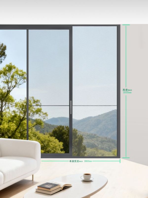 可选卷纱,收藏于侧边框;选配折叠纱。