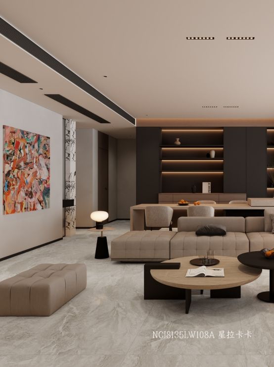 墙地对缝通铺600*1200柔光砖,显大又高级