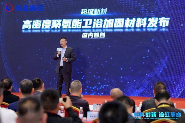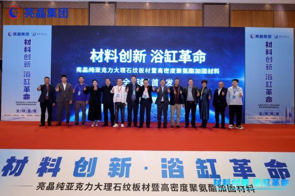 2025年12月9日,广东亮晶高分子材料有限公司“材料创新 浴缸革命”新品全球发布会在佛山西樵山会议中心盛大启幕。这场汇聚休闲卫浴领域头部生产企业的行业盛会,紧扣国家《卫浴行业高质量发展指导意见(2025年版)》与《建材行业稳增长工作方案(2025—2026年)》政策导向,重磅发布【高密度聚氨酯加固材料】与【纯亚克力大理石纹板材】两大革命性新品,以核心材料技术突破推动中国卫浴产业向绿色化、高端化、智能化转型,为“中国智造”赋能添翼。