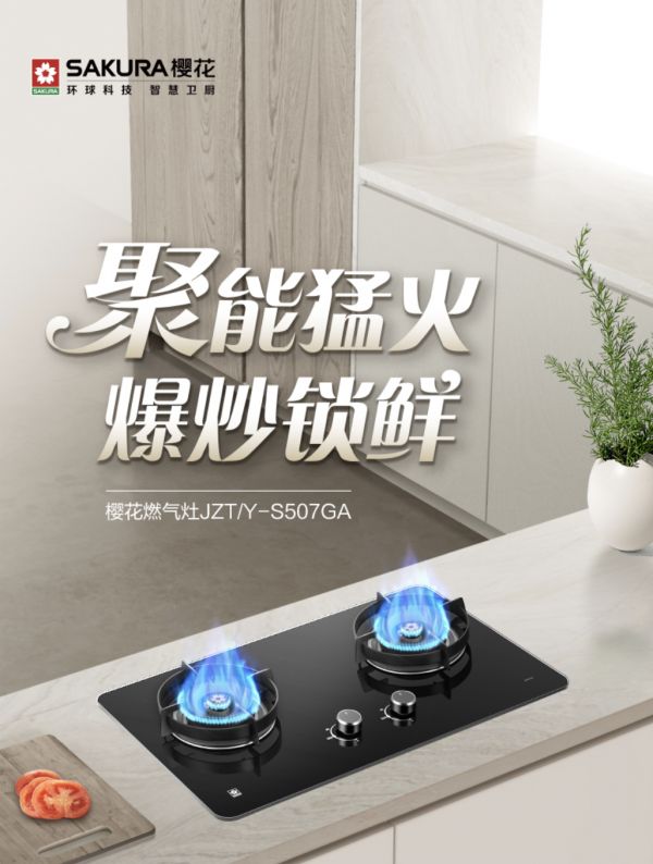 樱花燃气灶S507GA以精准可控的火力,让美味与效率并存,轻松满足全家人的味蕾享受。