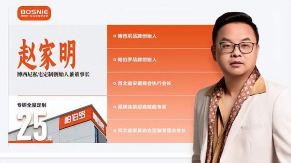 作为皖籍企业家在河北创业的优秀代表,赵家明董事长始终以实业报国为初心,带领博西尼全屋定制深耕行业 25 年。