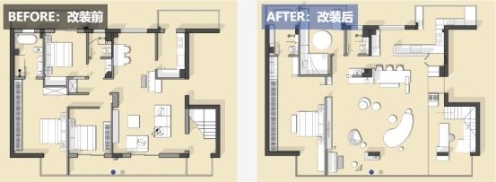 A:本案单层面积160,框架结构,一家三口居住。框架结构提供了很大的平面调整空间,我们完全推翻原始户型结构,仅保留两间卧室,打造开阔的客餐厨书房一体,让两代人拥有足够的私密空间,也更有家庭成员的互动场景。