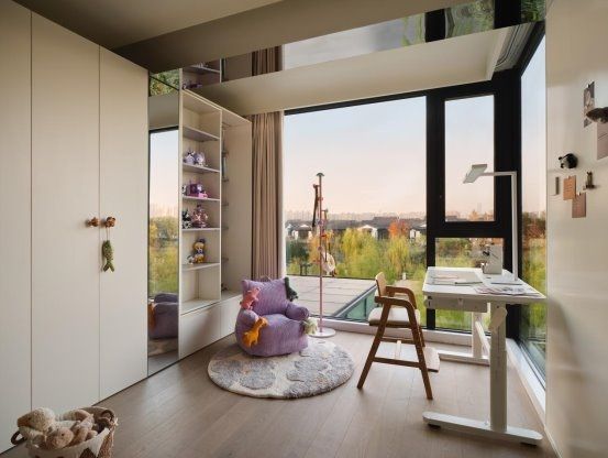 A:统计好每个家庭成员的具体需求,归类为开放或互动场景的功能,还是相对需要私密场景的功能,去一一罗列出功能分区,个别功能结合生活场景还会分别提供多处去布置,比如像孩子的学习区,除了单一化地把它落在孩子自己的房间内关起来学习,也应该在客餐厅和书房这些外部的公共空间提供可能性,让孩子和父母一起学习或是让父母陪读的时候有更开阔的空间感受,而不仅仅是闷在一个房间角落里,这对整个家庭的场景体验,孩子的学习氛围都会有所帮助。