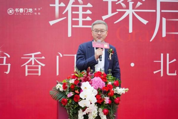 中国木材与木制品流通协会会长李佳峰代表协会对旗舰店开业致以热烈祝贺。他谈及北京的千年文脉底蕴与十里河家居建材特色街的行业标杆价值,称赞书香门地择址于此是品牌战略的重要落子,更是美学地板与首都文化的深度融合。他高度认可书香门地秉持 “美能增值” 理念以及在推动行业升级、履行社会责任等方面的卓越表现。他期待旗舰店以优质产品与独特美学理念赢得北京消费者的认可与喜爱,与行业同仁携手助力首都家居产业高质量发展。