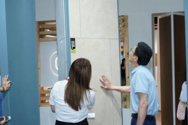 凝脂工艺精准复刻石材原生肌理,毫米级立体触面如玉温润,褪去冷硬,留存天然石脉的亲和质感。数码定制赋予纹理无限可能,色彩渐变流畅,图案衔接无界。其难以复刻的高奢品质,引发现场客商频频驻足,赞誉不绝。