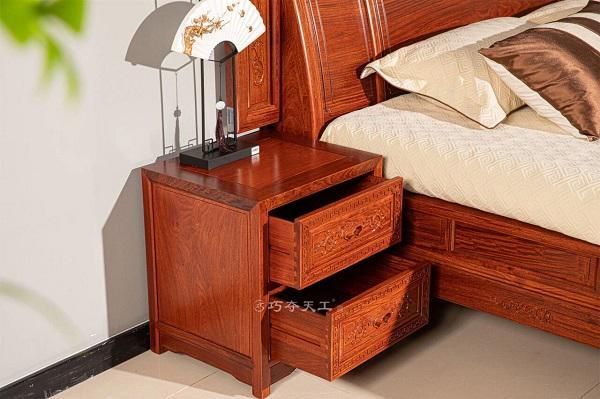 春天的播种,是为了秋天的收获;而好的睡眠,是为了更好地出发。这款大床,采用大果紫檀制成,色泽柔和,木香清雅。床头采用斜背设计,符合人体工程学,倚靠时恰到好处地承托起腰背,惬意而放松。中间巧妙镶嵌的圆珠,光滑圆润,轻轻拨动,寓意“时来运转,财源滚滚”。