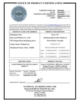 出口市场:绿盾门窗产品主攻对门窗性能要求严苛的北美市场,覆盖全球21个国家。要知道北美地区对门窗的抗风压、水密性、气密性、节能性检测标准远高于普通地区,绿盾门窗凭借过硬品质成功突围。并通过 NFRC(美国国家门窗等级委员会)、SGS(国际通用检验认证)、NAMIC(美国结构性能认证)、等严苛认证,技术研发和创新能力对标国际水平,名声响彻国际市场。